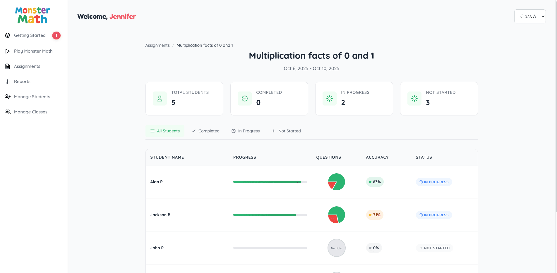 Select the assignment to see an overview of student progress.