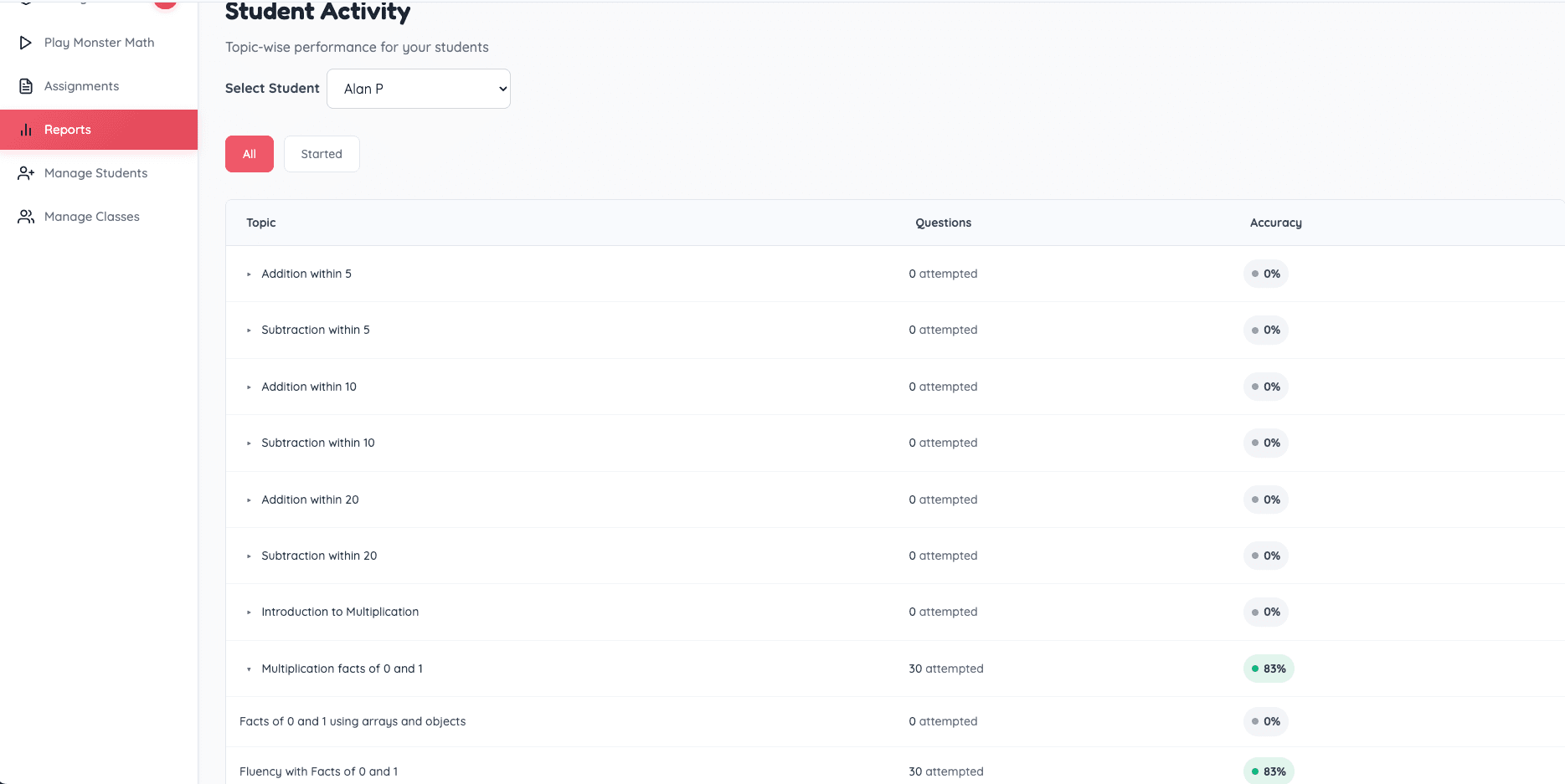 For detailed progress of a specific student: