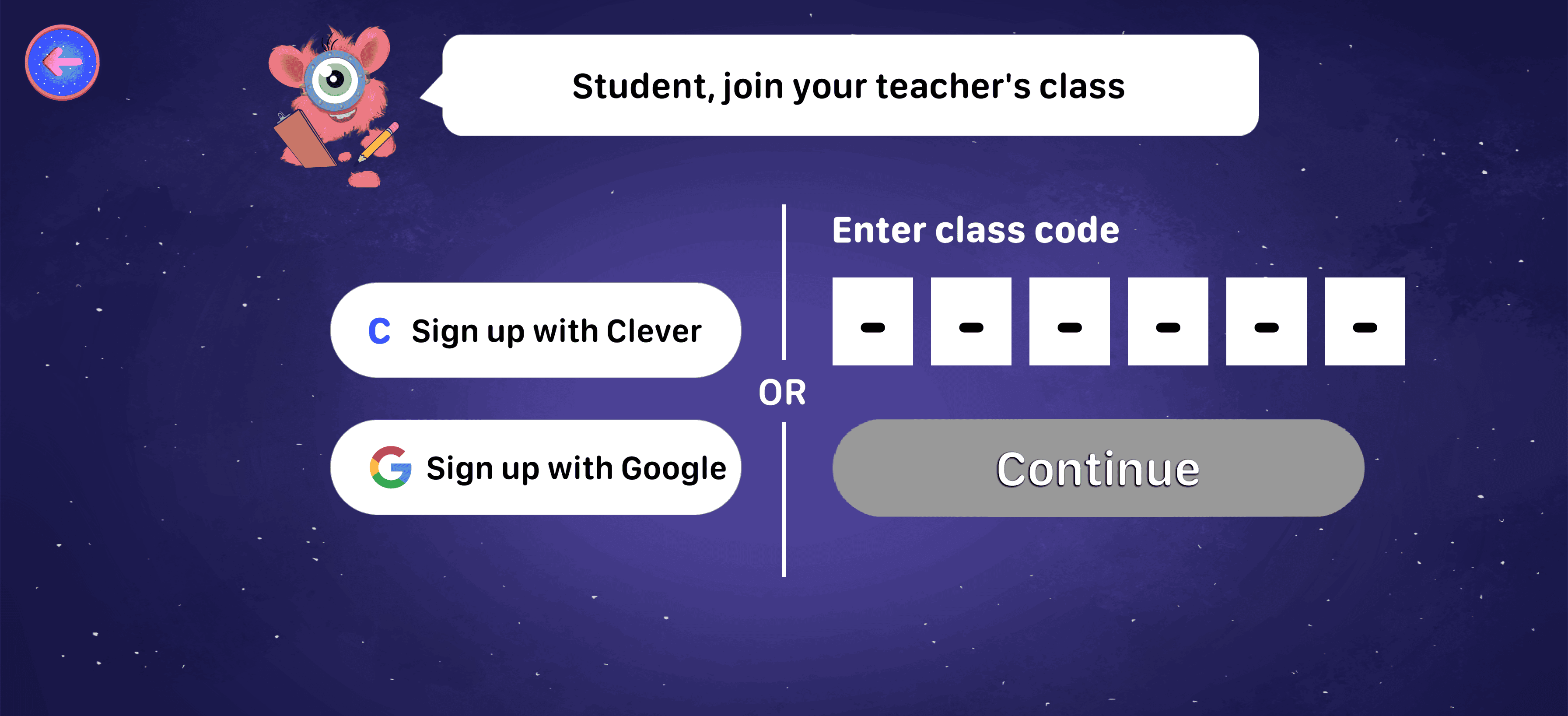 4. Students can log in with their Clever/Google credentials OR they can even log in using the class code provided by the teacher. (Class code can be found in the teacher dashboard for the classes created)