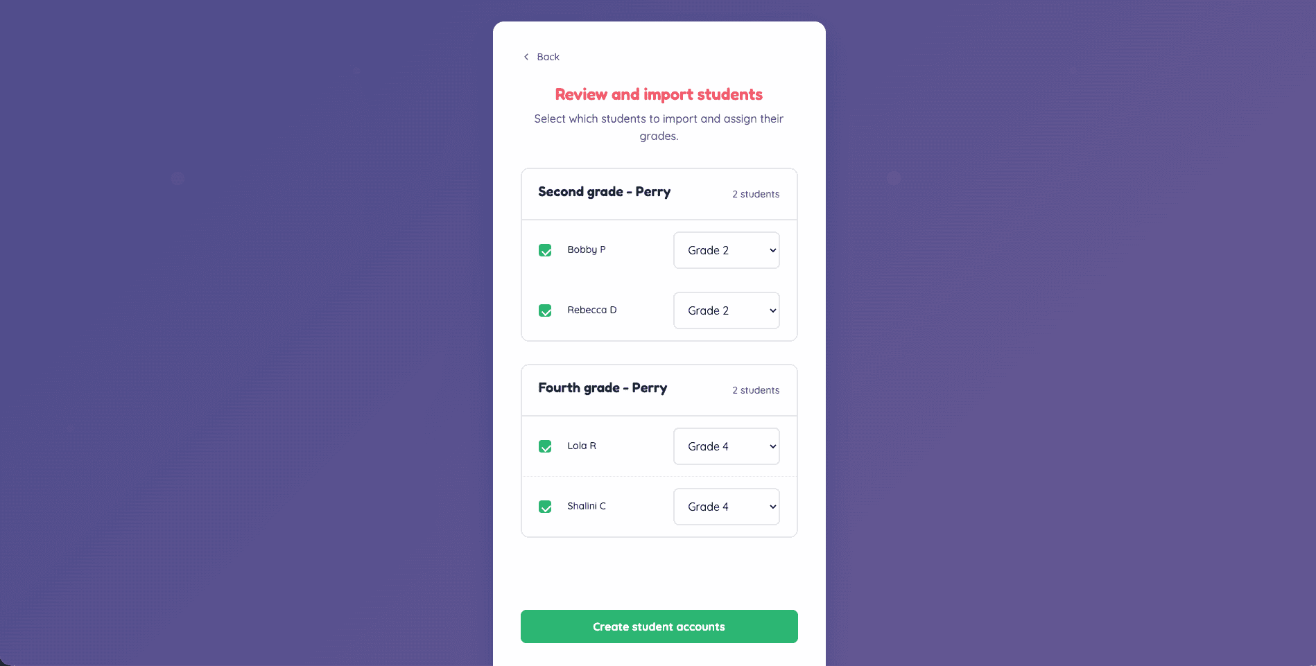 4. Select the students you would like to import
