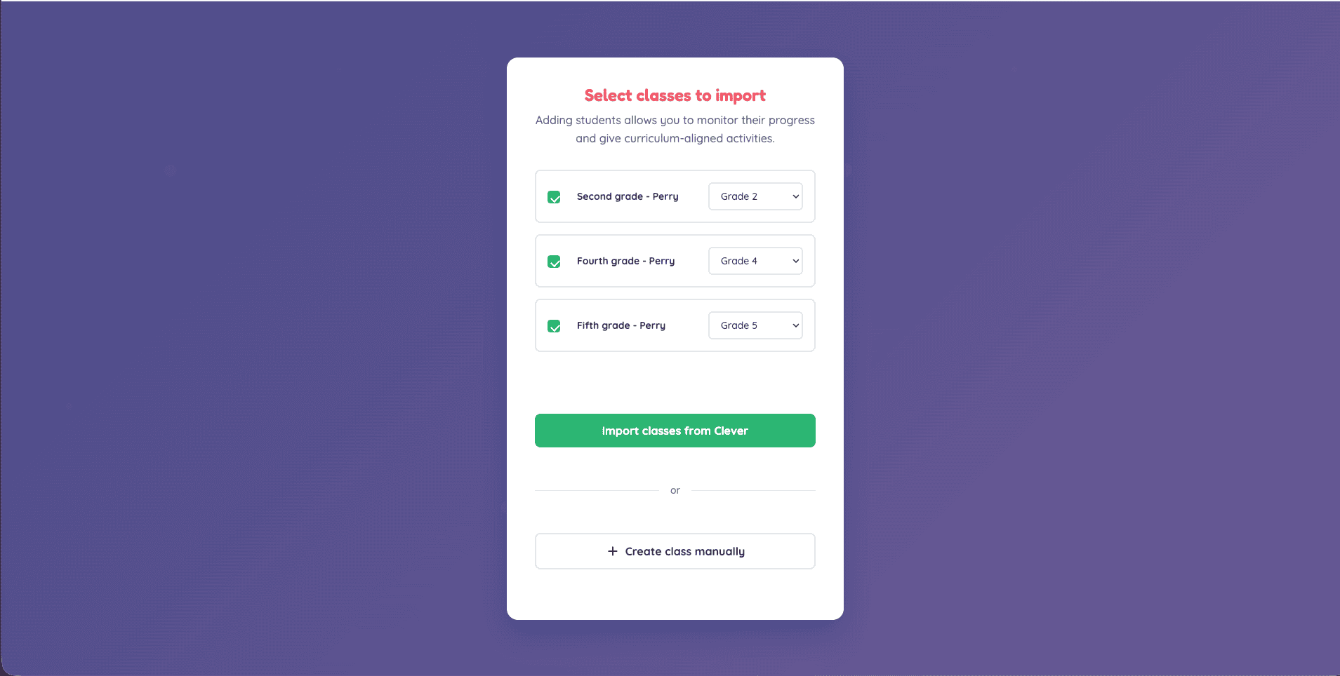You can easily import your class and students from Clever:
