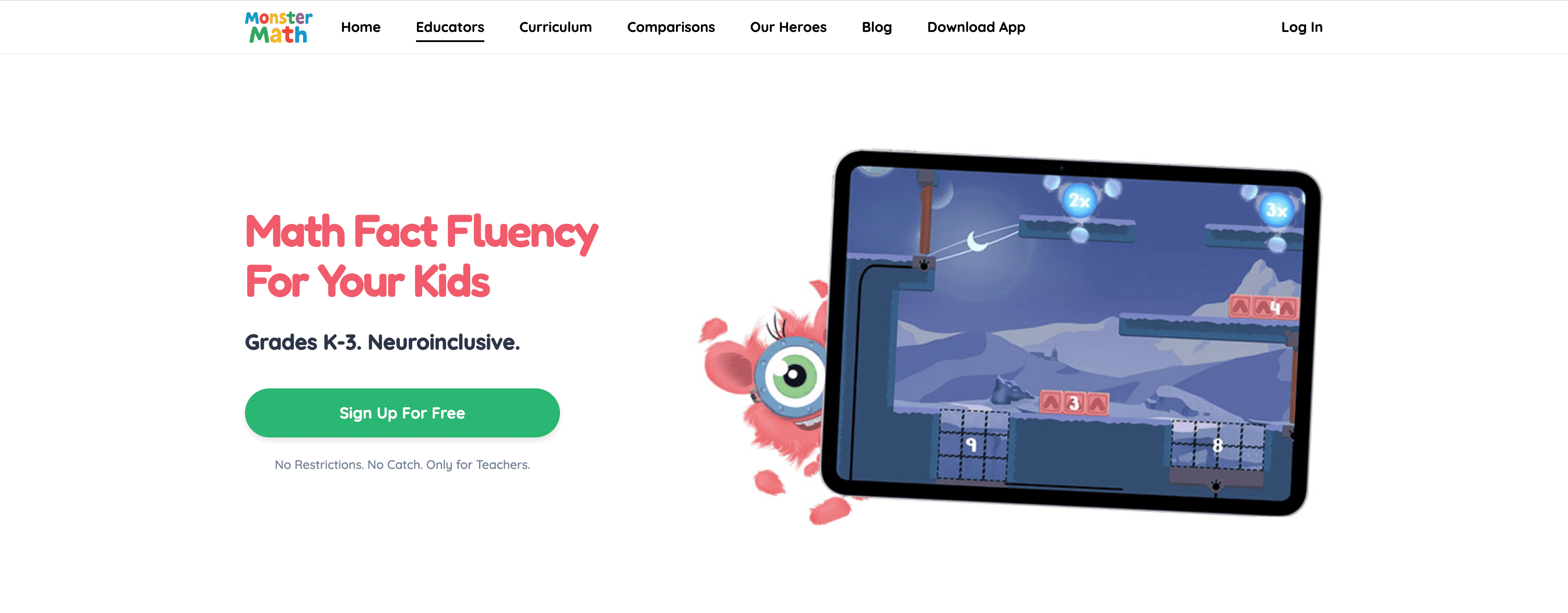 - Navigate to Monster Math and click on the 'Sign up for free' button.