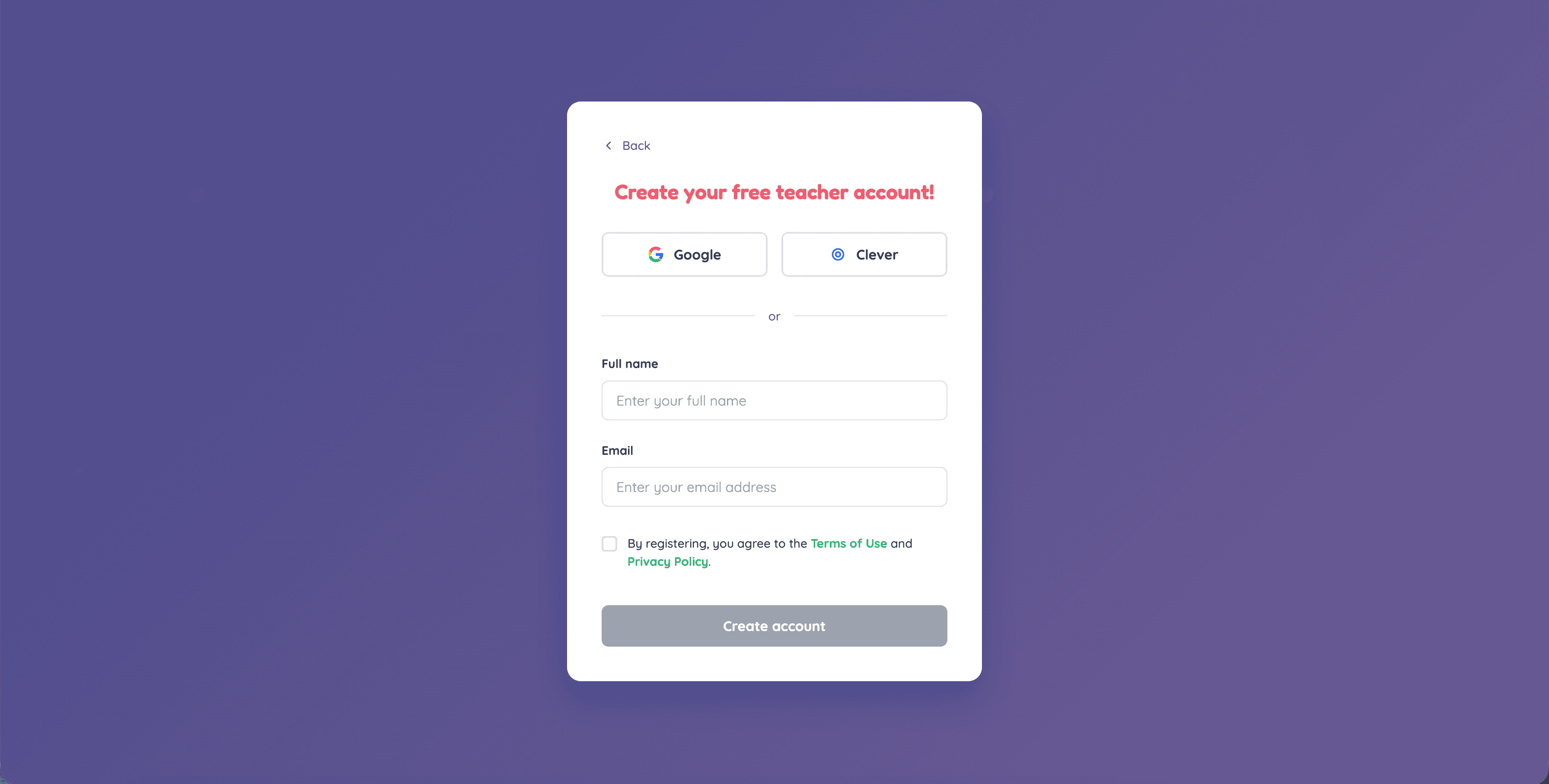 - Single Sign-On (SSO): If your school uses platforms like Clever or Google Classroom, click the corresponding button and sign in with your school credentials.